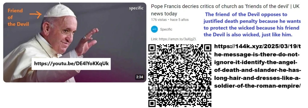 The Catholic Church no longer persecutes witches as they used to because now witches use the same images used by the Catholic Church (Deuteronomy 18:10-12, Revelation 18:23): «If you want to engage in our line of business, recognize our leadership, and do use only the images that we authorize!», the idols of the Catholic Church are equivalent to the protection amulets endorsed by sorcerers (Isaiah 2:8), the water that the church calls «holy water» is equivalent to the water of the » flowering baths» used by sorcerers, the skull at the foot of the cross, is equivalent to the skull used by sorcerers. When the one who is just prays with the one who is unjust: «Our Father who art in heaven», it is equivalent to a binding ritual led by sorcerers because the unjust are not children of God (Revelation 18:4-6, 2 Corinthians 6:14), only the righteous are children of God (Isaiah 43:6, Matthew 25:33, Matthew 13:13-43), and the righteous should know that to be freed from those bondages (Daniel 12:1-2 ; Proverbs 11:9; Genesis 3:13-15, Proverbs 29:27, Genesis 4:8, Psalms 110:1-6, Psalms 58:10, Psalms 5, Malachi 3:18), and they should also know that the salvation is by faith in the truth, which says that salvation is by righteous works, and only the righteous are capable of having that faith and doing righteous works (Revelation 22:11, Daniel 12:10), that’s why I do this while others not only do not help me but gnash their teeth, getting angry against me on the other side of the monitor (Isaiah 3:10-11, Habakkuk 2:4, Psalms 112:10), they resemble the unjust Romans who killed the Jewish saints, they robbed the testimonies of their faith and falsified them to later pass off the Greco-Roman lies as the complement of the Jewish truths before Christ. Rome lied to us with the Bible, the Bible is the product of the concealment and falsification of the gospel, and the contradictions in the Bible that I denounce in my blogs and in my videos are the best evidence of this, I know that there are other men like me who will a job like mine (Daniel 12:3). «Thank you» for preaching the Bible throughout the world Satan; the dirty work of a donkey was done by the roman empire; the clean work of a man is done by the chosen people.