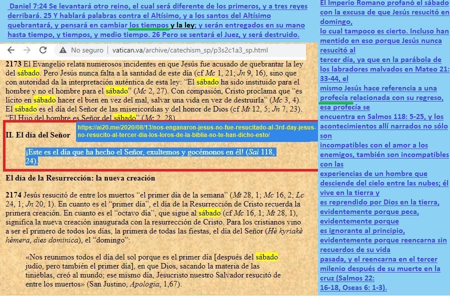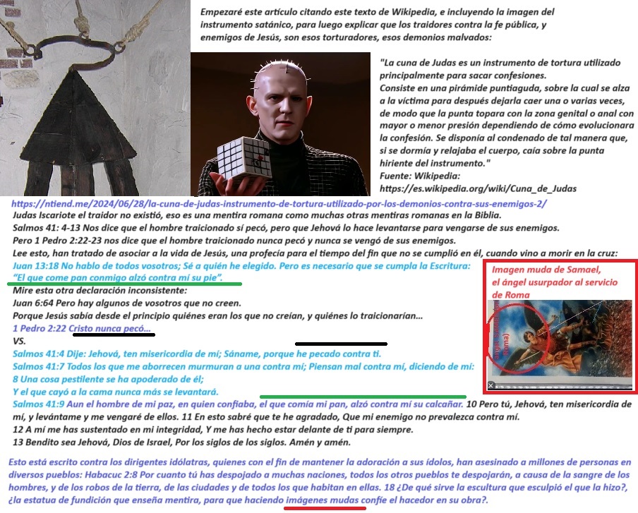 No creas que porque desmiento la doctrina del “amor a los enemigos” y muchas otras doctrinas en el Nuevo Testamento de la Biblia, signifique que yo defienda todos los textos del Antiguo Testamento de la Biblia: Hay serias contradicciones en el Antiguo Testamento: Ezequiel 18:23-24 dice que Dios no desea destruir al malvado y que es posible que el malvado se convierta en justo y que el justo se convierta en malvado, pero en base a los mensajes Daniel 12:10, Salmos 118:18-20 y en mi propia experiencia (Salmos 41:4-10), he llegado a la conclusión de que una persona que es injusta jamás puede dejar de pecar, pero que una persona que es justa puede trasgredir la ley de Dios solo si no la conoce, en mi caso cuando yo era católico yo me arrodillaba delante de las cruces y las demás imágenes católicas de esa iglesia para rezar (el pecado de la idolatría (Transgresión contra Éxodo 20:5)), y cuando dejé de ser católico pero yo aún no descubría cierta falsedad de Roma en la Biblia, yo comía carne de cerdo porque estaba confiado en la veracidad de un mensaje en 1 Timoteo 4 (El pecado de cometer actos impuros (Transgresión contra Deuteronomio 14:3)). El mensaje en Daniel 12:3-10 contradice el mensaje en Ezequiel 18:23-24, el mensaje en Proverbios 9:8-10 y en Apocalipsis 22:11 defiende el mensaje en Daniel 12:3-10. En el antiguo testamento otra de las cosas que no cuajan con la justicia es considerar justo a Jacob, como si la victoria de los justos fuese la victoria de Jacob (Salmos 14:5-7), Jacob engañó a su padre que estaba ciego para usurpar a su hermano Esaú y lograr de ese modo, que bajo la ignorancia, su padre Isaac lo bendiga a él y no a Esaú, eso no hacen las personas justas (Génesis 27:5-40), pero verán en la narración como la madre de Esaú y de Jacob maquinó esta injusticia, por eso mismo el mandamiento “Honrarás padre y madre” (Éxodo 20:12), debe tener cláusulas de excepción que no he encontrado en el Antiguo Testamento, pero eso no significa que nunca hayan existido, justificar al malvado o condenar al justo son actos que Dios aborrece (Proverbios 17:15). Por si esto no fuese suficiente, Eclesiastés es un libro que lo he hallado falso, no inspirado en la justicia: Eclesiastés 7:16-18 dice que no hay que ser sabio en exceso y no hay que ser ni muy justo ni muy injusto, mientras que Proverbios 1:7 y Proverbios 9:9 muestra a la sabiduría como algo deseable y que es bueno ser cada vez más sabio, sin un límite que te diga: “Hasta aquí no más, ya eres demasiado sabio”; y además Proverbios 29:27 enseña que no hay tamices o grises: O eres blanco o negro (Espiritualmente hablando: O eres justo o eres injusto): Observa además como Eclesiastés 7:16-18 invita a probar de todo afirmando que con solo temer a Dios, saldrás librado del mal, como si temer a Dios significase transgredir a propósito su ley, (Ese mensaje es semejante a los mensajes en el Nuevo Testamento que te incitan a comer carne de cerdo sin que te sientas por ello pecador, pero con esa falsedad romana atribuida por ellos a los santos, los romanos insultan la sangre de personas fieles a Dios quienes murieron asesinadas a manos de los perseguidores griegos, por negarse a comer carne de cerdo (2 Macabeos 6:18-20), los romanos, inspirados en Zeus o Júpiter y en su dios sol invencible, han contradicho los claros mensaje de Isaías y de Moisés (Mateo 15:17, 1 Timoteo 4, Deuteronomio 14:3, Isaías 65:4, Isaías 66:17). Si lees el evangelio de Tomás veras un mensaje que defiende las falsedades en Mateo 15:17 y 1 Timoteo 4 tocante a los alimentos prohibidos, si lees el Evangelio de Felipe verás un mensaje que defiende la mentira romana del nacimiento de Jesús a partir de una mujer que, pese a estar embarazada era virgen, para esa falsedad los romanos sacaron de contexto la profecía en Isaías 7, si lees el libro de Enoc encontrarás narraciones absurdas sobre las leyes de la naturaleza, y otras cosas que no cuadran. Por estas razones y más me lavo las manos tanto del contenido de la Biblia como de los Apócrifos, ambos en su conjunto son falsos, durante mi ignorancia defendí estos textos y por eso me corrijo así de esos errores involuntarios, que mi sitio web de 2004 evidencia que lo cometí. Esta página: https : // www . geocities . ws / naodanxxii / idolos . html ⚠️ El sitio en geocities[.]ws/naodanxxii ya no es seguro y no es mío, no lo visites, contiene una copia preparada por terceros, de la página web que creé en Geocities, un antiguo servicio de hosting que tenía Yahoo en 2004, Geocities de Yahoo ya no existe, y perdí el acceso a mi antigua dirección de correo electrónico de Yahoo asociada a esa página web, mi página había dejado de existir, sin embargo hace aproximadamente un año, para mi sorpresa encontré una copia exacta de esa página web. , con una dirección URL similar a la original, no puedo borrar ni editar esa copia, pero si lees allí encontrarás evidencia de que mi interés por la religión no está motivado por el interés de amasar dinero mediante engaños, ni por tener un harén de mujeres a mi disposición, ni por recibir los aplausos de la multitud, mi interés se basa en que creo que Dios existe y por eso busco a Dios para que me dé su bendición, plasmada en una mujer leal y virgen para unirme a ella en matrimonio, no yendo a Él con mentiras como lo hizo Jacob contra su padre, sino yendo a mi Padre con la verdad, a pesar de mis errores involuntarios, mi objetivo era el mismo: Mi interés en el tema de la religión comenzó desde mi interés anterior y actual en tener una mujer justa.: Proverbios 28:13 El que encubre sus pecados no prosperará; Pero el que confiesa sus pecados y se aparta de ellos alcanzará el favor de Jehová. Proverbios 18:22 El que encuentra esposa halla el bien, y alcanza favor de Jehová. Levítico 21:14 No tomará mujer viuda, ni mujer divorciada, ni mujer prostituta, ni mujer infame, sino que él tomará por esposa 
