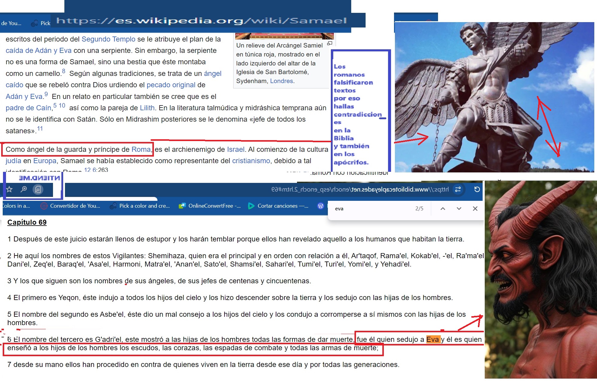 No creas que porque desmiento la doctrina del “amor a los enemigos” y muchas otras doctrinas en el Nuevo Testamento de la Biblia, signifique que yo defienda todos los textos del Antiguo Testamento de la Biblia: Hay serias contradicciones en el Antiguo Testamento: Ezequiel 18:23-24 dice que Dios no desea destruir al malvado y que es posible que el malvado se convierta en justo y que el justo se convierta en malvado, pero en base a los mensajes Daniel 12:10, Salmos 118:18-20 y en mi propia experiencia (Salmos 41:4-10), he llegado a la conclusión de que una persona que es injusta jamás puede dejar de pecar, pero que una persona que es justa puede trasgredir la ley de Dios solo si no la conoce, en mi caso cuando yo era católico yo me arrodillaba delante de las cruces y las demás imágenes católicas de esa iglesia para rezar (el pecado de la idolatría (Transgresión contra Éxodo 20:5)), y cuando dejé de ser católico pero yo aún no descubría cierta falsedad de Roma en la Biblia, yo comía carne de cerdo porque estaba confiado en la veracidad de un mensaje en 1 Timoteo 4 (El pecado de cometer actos impuros (Transgresión contra Deuteronomio 14:3)). El mensaje en Daniel 12:3-10 contradice el mensaje en Ezequiel 18:23-24, el mensaje en Proverbios 9:8-10 y en Apocalipsis 22:11 defiende el mensaje en Daniel 12:3-10. En el antiguo testamento otra de las cosas que no cuajan con la justicia es considerar justo a Jacob, como si la victoria de los justos fuese la victoria de Jacob (Salmos 14:5-7), Jacob engañó a su padre que estaba ciego para usurpar a su hermano Esaú y lograr de ese modo, que bajo la ignorancia, su padre Isaac lo bendiga a él y no a Esaú, eso no hacen las personas justas (Génesis 27:5-40), pero verán en la narración como la madre de Esaú y de Jacob maquinó esta injusticia, por eso mismo el mandamiento “Honrarás padre y madre” (Éxodo 20:12), debe tener cláusulas de excepción que no he encontrado en el Antiguo Testamento, pero eso no significa que nunca hayan existido, justificar al malvado o condenar al justo son actos que Dios aborrece (Proverbios 17:15). Por si esto no fuese suficiente, Eclesiastés es un libro que lo he hallado falso, no inspirado en la justicia: Eclesiastés 7:16-18 dice que no hay que ser sabio en exceso y no hay que ser ni muy justo ni muy injusto, mientras que Proverbios 1:7 y Proverbios 9:9 muestra a la sabiduría como algo deseable y que es bueno ser cada vez más sabio, sin un límite que te diga: “Hasta aquí no más, ya eres demasiado sabio”; y además Proverbios 29:27 enseña que no hay tamices o grises: O eres blanco o negro (Espiritualmente hablando: O eres justo o eres injusto): Observa además como Eclesiastés 7:16-18 invita a probar de todo afirmando que con solo temer a Dios, saldrás librado del mal, como si temer a Dios significase transgredir a propósito su ley, (Ese mensaje es semejante a los mensajes en el Nuevo Testamento que te incitan a comer carne de cerdo sin que te sientas por ello pecador, pero con esa falsedad romana atribuida por ellos a los santos, los romanos insultan la sangre de personas fieles a Dios quienes murieron asesinadas a manos de los perseguidores griegos, por negarse a comer carne de cerdo (2 Macabeos 6:18-20), los romanos, inspirados en Zeus o Júpiter y en su dios sol invencible, han contradicho los claros mensaje de Isaías y de Moisés (Mateo 15:17, 1 Timoteo 4, Deuteronomio 14:3, Isaías 65:4, Isaías 66:17). Si lees el evangelio de Tomás veras un mensaje que defiende las falsedades en Mateo 15:17 y 1 Timoteo 4 tocante a los alimentos prohibidos, si lees el Evangelio de Felipe verás un mensaje que defiende la mentira romana del nacimiento de Jesús a partir de una mujer que, pese a estar embarazada era virgen, para esa falsedad los romanos sacaron de contexto la profecía en Isaías 7, si lees el libro de Enoc encontrarás narraciones absurdas sobre las leyes de la naturaleza, y otras cosas que no cuadran. Por estas razones y más me lavo las manos tanto del contenido de la Biblia como de los Apócrifos, ambos en su conjunto son falsos, durante mi ignorancia defendí estos textos y por eso me corrijo así de esos errores involuntarios, que mi sitio web de 2004 evidencia que lo cometí. Esta página: https://www.geocities.ws/naodanxxii/idolos.html contiene una copia preparada por terceros, de la página web que creé en Geocities, un antiguo servicio de hosting que tenía Yahoo en 2004, Geocities de Yahoo ya no existe, y perdí el acceso a mi antigua dirección de correo electrónico de Yahoo asociada a esa página web, mi página había dejado de existir, sin embargo hace aproximadamente un año, para mi sorpresa encontré una copia exacta de esa página web. , con una dirección URL similar a la original, no puedo borrar ni editar esa copia, pero si lees allí encontrarás evidencia de que mi interés por la religión no está motivado por el interés de amasar dinero mediante engaños, ni por tener un harén de mujeres a mi disposición, ni por recibir los aplausos de la multitud, mi interés se basa en que creo que Dios existe y por eso busco a Dios para que me dé su bendición, plasmada en una mujer leal y virgen para unirme a ella en matrimonio, no yendo a Él con mentiras como lo hizo Jacob contra su padre, sino yendo a mi Padre con la verdad, a pesar de mis errores involuntarios, mi objetivo era el mismo: Mi interés en el tema de la religión comenzó desde mi interés anterior y actual en tener una mujer justa.: Proverbios 28:13 El que encubre sus pecados no prosperará; Pero el que confiesa sus pecados y se aparta de ellos alcanzará el favor de Jehová. Proverbios 18:22 El que encuentra esposa halla el bien, y alcanza favor de Jehová. Levítico 21:14 No tomará mujer viuda, ni mujer divorciada, ni mujer prostituta, ni mujer infame, sino que él tomará por esposa a una mujer virgen de su pueblo. Proverbios 19:14 La casa y las riquezas son herencia de los padres, pe
