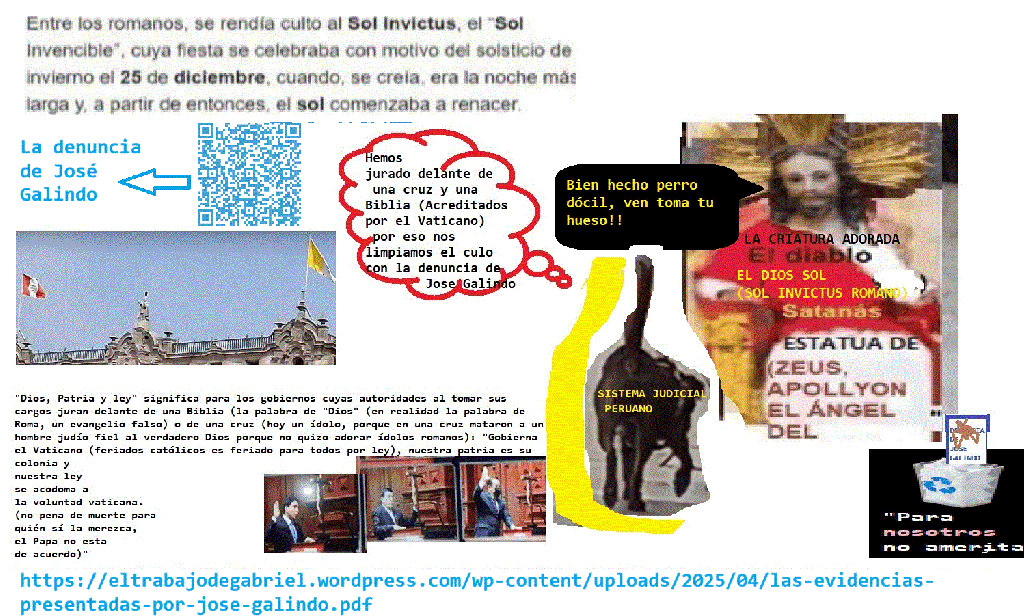 Y ellos dicen también que la verdad es su dios de cabello largo, ese dios Júpiter, el Zeus griego que proclaman con sus imágenes, lo hicieron a través de un evangelio falso que dice de él: «Yo soy la verdad, yo soy la puerta, adórenme a mi todos los dioses (Hebreos 1:6, Juan 14:16)». Era de suponer que esos asesinos odiaban la verdad y por eso engañando falsificaron sus mensajes, y siguiendo engañado dijeron: «Ya no perseguimos esa religión, ahora la difundimos.». Mi «OVNI» NTIEND.ME, emite luz. Esa luz destruye las calumnias del dragón o Satanás, cuyo nombre significa «el calumniador».