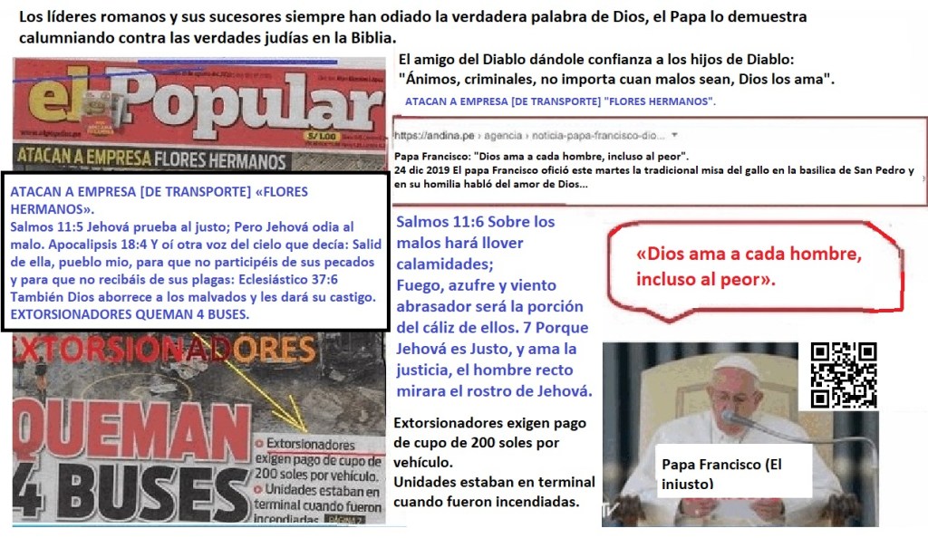 «El imperio Romano, Bahira, Mahoma, Jesús y el judaísmo perseguido. El nacimiento y la muerte de cuarta bestia. La alianza greco-romana por los mismos dioses. El Imperio seléucida. Cuidado con creer en el evangelio del anticristo (Buenas noticias para los injustos, aunque falsas) Si quieres salvarte del engaño del adversario de la justicia, considera que: Para rechazar el falso evangelio de Roma, acepte que si Jesús fue justo entonces no amó a sus enemigos, y si no fue hipócrita entonces no predicó el amor a los enemigos porque no predicaba lo que no practicaba: Proverbios 29:27 Los justos odian a los injustos, y los injustos odian a los justos. Esto es parte del evangelio adulterado por los romanos para la Biblia: 1 Pedro 3:18 Porque Cristo murió una vez por los pecados, el justo por los injustos, para llevarnos a Dios. Ahora mire esto que desmiente esa calumnia: Salmo 118:20 Esta es la puerta de Jehová; los justos entrarán por ella. 21 Te daré gracias porque me has escuchado y has sido mi salvación. 22 La piedra que rechazaron los constructores se ha convertido en la piedra angular. Jesús maldice a sus enemigos en la parábola que predice su muerte y regreso: Lucas 20:14 Pero cuando los viñadores vieron esto, discutieron entre sí, diciendo: Éste es el heredero; Venid, matémoslo, para que la herencia sea nuestra. 15 Entonces lo echaron de la viña y lo mataron. ¿Qué les hará entonces el dueño de la viña? 16 Él vendrá y destruirá a estos viñadores y dará la viña a otros. Cuando lo oyeron, dijeron: ¡De ninguna manera! 17 Pero Jesús, mirándolos, dijo: ¿Qué, pues, es esto que está escrito: La piedra que desecharon los constructores se ha convertido en la piedra angular? Él habló de esta piedra, de la piedra de la pesadilla del rey de Babilonia: Daniel 2:31 Tú, oh rey, veías, y he aquí una gran imagen. Esta imagen, que era muy grande, y cuya gloria era muy sublime, estaba en pie delante de ti, y su aspecto era terrible. 32 La cabeza de esta imagen era de oro fino; su pecho y sus brazos, de plata; su vientre y sus muslos, de bronce; 33 sus piernas, de hierro; sus pies, en parte de hierro y en parte de barro cocido. 34 Estabas mirando, hasta que una piedra fue cortada, no con mano, e hirió a la imagen en sus pies de hierro y de barro cocido, y los desmenuzó. 35 Entonces fueron desmenuzados también el hierro, el barro cocido, el bronce, la plata y el oro, y fueron como tamo de las eras del verano, y se los llevó el viento sin que de ellos quedara rastro alguno. Mas la piedra que hirió a la imagen fue hecha un gran monte que llenó toda la tierra. La cuarta bestia es la alianza de los líderes de todas las falsas religiones amigables con el fraude romano denunciado. El Cristianismo y el Islam dominan el mundo, la mayoría de los gobiernos o juran por el Corán o por la Biblia, por ese simple motivo, aunque los gobiernos lo nieguen, son gobiernos religiosos que se someten a las autoridades religiosas que están detrás de esos libros por los cuales juraron. Aquí les voy a mostrar la influencia romana en los dogmas de estas religiones y como distan mucho de los dogmas de la religión que perseguía Roma, Además, lo que les voy a mostrar no es parte de la religión que hoy se conoce como Judaísmo. Y si a esto le sumamos la fraternidad de los líderes del Judaísmo, Cristianismo e Islam, hay suficientes elementos para señalar a Roma como la creadora de los dogmas de estas religiones, y que la última religión mencionada no es la misma que el Judaísmo que perseguía Roma. Sí, estoy afirmando que Roma creó el cristianismo y que persiguió un Judaísmo diferente al actual, los líderes leales del Judaísmo legítimo jamás darían abrazos fraternales a difusores de doctrinas idólatras. Es evidente que no soy cristiano, ¿entonces porque cito pasajes de la Biblia para dar sustento a lo que digo?, pues porque no todo en la Biblia pertenece exclusivamente al cristianismo, parte de su contenido es el contenido de la religión del camino de la justicia que fue perseguido por el imperio romano por ser contrario al ideal romano de hacer que «Todos los caminos conduzcan a Roma (Es decir, que esos caminos favorezcan los intereses imperiales), por eso tomo algunos pasajes de la Biblia para sustentar mis afirmaciones. Daniel 2:40 Y el cuarto reino será fuerte como hierro; y como el hierro desmenuza y rompe todas las cosas, desmenuzará y quebrantará todo. 41 Y lo que viste de los pies y los dedos, en parte de barro cocido de alfarero y en parte de hierro, será un reino dividido; mas habrá en él algo de la fuerza del hierro, así como viste hierro mezclado con barro cocido. 42 Y por ser los dedos de los pies en parte de hierro y en parte de barro cocido, el reino será en parte fuerte, y en parte frágil. 43 Así como viste el hierro mezclado con barro, se mezclarán por medio de alianzas humanas; pero no se unirán el uno con el otro, como el hierro no se mezcla con el barro. 44 Y en los días de estos reyes el Dios del cielo levantará un reino que no será jamás destruido, ni será el reino dejado a otro pueblo; desmenuzará y consumirá a todos estos reinos, pero él permanecerá para siempre. El cuarto reino es el reino de las falsas religiones. Por eso a los Papas en el Vaticano le dan honores los dignatarios de países como Estados Unidos. El país líder en el mundo no es EEUU, no es la bandera de los Estados Unidos la que ondea en las plazas de armas de las capitales de varios países de Latino América, es la bandera del Vaticano la que ondea. Los Papas se reúnen con los líderes de otras religiones dominantes, cosa imposible de imaginar entre profetas y falsos profetas. Pero entre falsos profetas estas alianzas son posibles. La piedra angular es la justicia. Los romanos no sólo despreciaban el hecho de que fuera un hombre justo, sino también el hecho de que él merecía casarse con una mujer justa: 1 Corintios 11:7 La mujer es la gloria de
