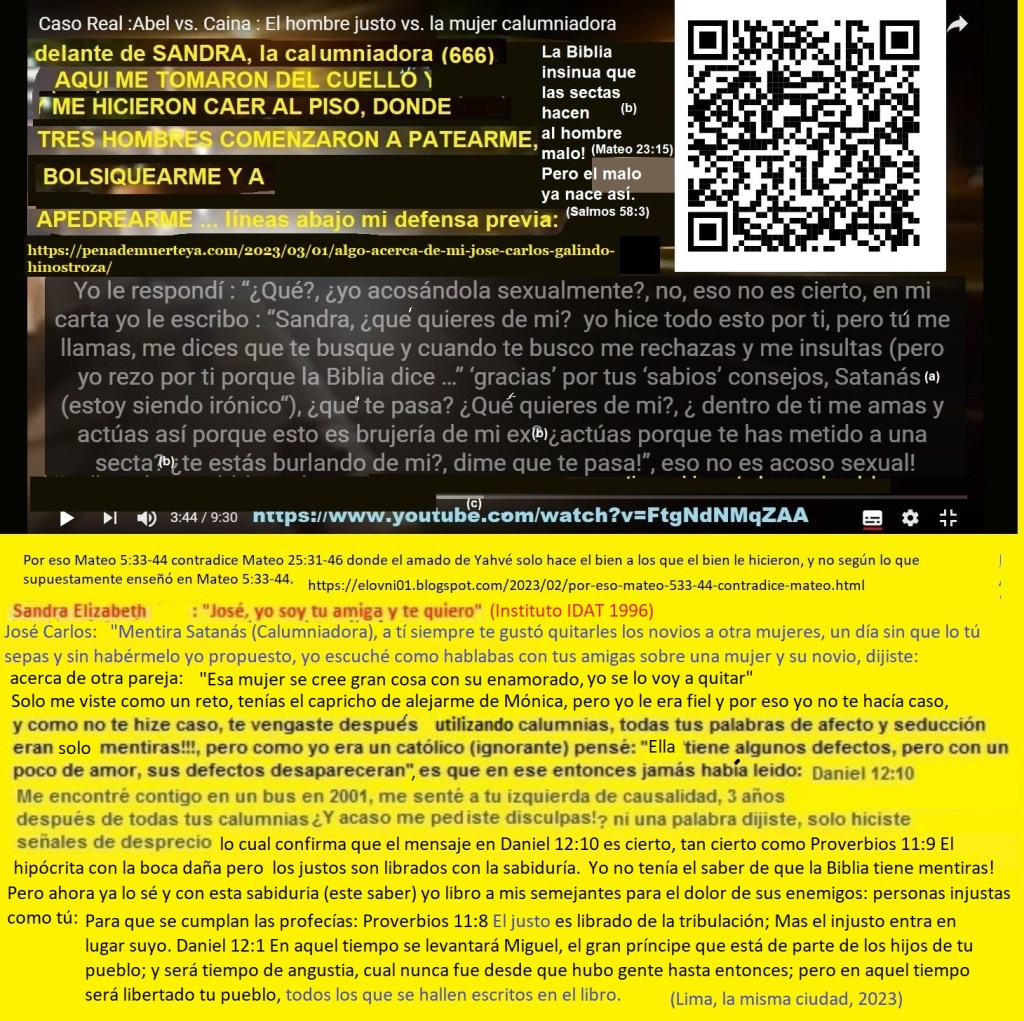 https://itwillbedotme.wordpress.com/wp-content/uploads/2025/03/idi01-ella-me-encontrara-la-mujer-virgen-me-creera-.docx Ella me encontrará, la mujer virgen me creerá. ( https://ellameencontrara.com – https://lavirgenmecreera.com – https://shewillfind.me ) Este es el trigo en la Biblia que destruye la cizaña romana en la Biblia: Apocalipsis 19:11 Entonces vi el cielo abierto, y había un caballo blanco; y el que lo montaba se llamaba Fiel y Verdadero, y con justicia juzga y hace la guerra. Apocalipsis 19:19 Y vi a la bestia, y a los reyes de la tierra, y a sus ejércitos reunidos para hacer guerra contra el que estaba sentado en el caballo y contra su ejército. Salmos 2:2-4 «»Los reyes de la tierra se levantan, y los gobernantes consultan unidos contra el Señor y contra su ungido, diciendo: ‘Rompamos sus ataduras y echemos de nosotros sus cuerdas.’ El que mora en los cielos se reirá; el Señor se burlará de ellos.»» Ahora, un poco de lógica básica: si el jinete lucha por la justicia, pero la bestia y los reyes de la tierra luchan contra este jinete, entonces la bestia y los reyes de la tierra están en contra de la justicia. Por lo tanto, representan el engaño de las falsas religiones que gobiernan con ellos. La gran ramera de Babilonia, que es la iglesia falsa creada por Roma, se ha considerado a sí misma «»la esposa del ungido del Señor»», pero los falsos profetas de esta organización que vende ídolos y palabras aduladoras no comparten los objetivos personales del ungido del Señor y de los verdaderos santos, porque los líderes impíos han elegido para sí mismos el camino de la idolatría, el celibato o la sacramentalización de matrimonios impíos a cambio de dinero. Sus sedes religiosas están llenas de ídolos, incluyendo falsos libros sagrados, ante los cuales se inclinan: Isaías 2:8-11 8 Su tierra está llena de ídolos; se postran ante la obra de sus manos, ante lo que hicieron sus dedos. 9 El hombre se ha inclinado, y el hombre se ha humillado; por tanto, no los perdones. 10 Métete en la peña, escóndete en el polvo, ante la temible presencia del SEÑOR y la gloria de su majestad. 11 La altivez de los ojos del hombre será abatida, y la soberbia de los hombres será humillada; solo el SEÑOR será exaltado en aquel día. Proverbios 19:14 Casa y riquezas son herencia de los padres, pero la mujer prudente es del SEÑOR. Levítico 21:14 El sacerdote del SEÑOR no tomará por esposa a una viuda, ni a una divorciada, ni a una mujer impura, ni a una ramera; tomará por esposa a una virgen de su propio pueblo. Apocalipsis 1:6 Y nos hizo reyes y sacerdotes para su Dios y Padre; a él sea la gloria y el dominio por los siglos de los siglos. 1 Corintios 11:7 La mujer es la gloria del hombre. ¿Qué significa en Apocalipsis que la bestia y los reyes de la tierra hacen la guerra al jinete del caballo blanco y su ejército? El significado es claro, los líderes mundiales están mano a mano con los falsos profetas que son diseminadores de las religiones falsas que dominan entre los reinos de la tierra, por razones obvias, eso incluye el cristianismo, el Islam, etc. Estos gobernantes están en contra de la justicia. y la verdad, cuáles son los valores que defiende el jinete del caballo blanco y su ejército leal a Dios. Como es evidente, el engaño es parte de los falsos libros sagrados que estos cómplices defienden con la etiqueta “Libros Autorizados de las Religiones Autorizadas”, pero la única religión que defiendo es la justicia, defiendo el derecho de los justos a no ser engañados con engaños religiosos. Apocalipsis 19:19 Entonces vi la bestia y los reyes de la tierra y sus ejércitos reunidos para hacer guerra contra el jinete del caballo y contra su ejército. Apocalipsis 19:11 Entonces vi el cielo abierto, y he aquí un caballo blanco. El que estaba sentado en él se llamaba Fiel y Verdadero, y con justicia juzga y hace la guerra. Ahora una lógica básica, si el jinete defiende la justicia, pero la bestia y los reyes de la tierra luchan contra este jinete, entonces la bestia y los reyes de la tierra están en contra de la justicia, por lo tanto defienden el engaño de las religiones falsas que gobiernan con ellos.Un duro golpe de realidad es a «Babilonia» la «resurrección» de los justos, que es a su vez la reencarnación de Israel en el tercer milenio: La verdad no destruye a todos, la verdad no duele a todos, la verdad no incomoda a todos: Israel, la verdad, nada más que la verdad, la verdad que duele, la verdad que incomoda, verdades que duelen, verdades que atormentan, verdades que destruyen.Esta es mi historia: José, un joven criado en enseñanzas católicas, vivió una serie de acontecimientos marcados por relaciones complejas y manipulaciones. A los 19 años inició una relación con Mónica, una mujer posesiva y celosa. Aunque José sentía que debía terminar la relación, su formación religiosa lo llevó a intentar cambiarla con amor. Sin embargo, los celos de Mónica se intensificaron, especialmente hacia Sandra, una compañera de clase que le hacía insinuaciones a José.