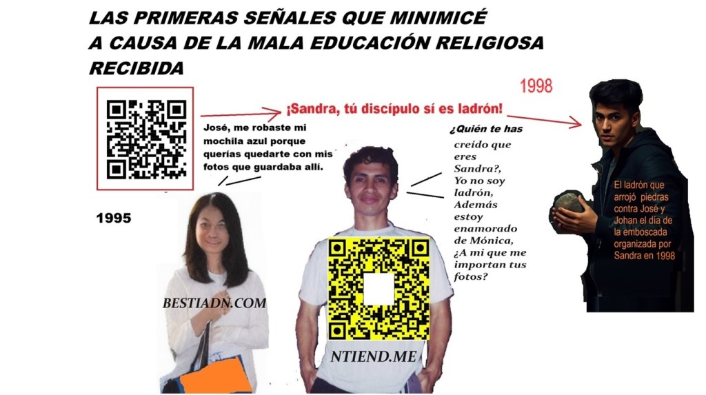 Finalmente, en 1996, José rompió con Mónica y decidió acercarse a Sandra, quien inicialmente había mostrado interés en él. Cuando José intentó hablar con ella sobre sus sentimientos, Sandra no le permitió explicarse, lo trató con palabras ofensivas y él no entendió la razón. José optó por distanciarse, pero en 1997 creyó tener la oportunidad de hablar con Sandra, esperando que ella le explicara su cambio de actitud y pudiera compartir los sentimientos que había mantenido callados. En su cumpleaños en julio, la llamó como lo había prometido un año antes, cuando aún eran amigos, algo que no pudo hacer en 1996 porque estaba con Mónica. En aquel entonces, solía creer que las promesas nunca debían romperse (Mateo 5:34-37), aunque ahora entiende que algunas promesas y juramentos pueden reconsiderarse si se hicieron por error o si la persona ya no los merece. Cuando terminó de saludarla y estaba a punto de colgar, Sandra suplicó desesperadamente: «»»»Espera, espera, ¿podemos vernos?»»»» Eso le hizo pensar que ella había recapacitado y que finalmente le explicaría su cambio de actitud, permitiéndole compartir los sentimientos que había guardado en silencio. Sin embargo, Sandra nunca le dio respuestas claras, manteniendo la intriga con actitudes evasivas y contraproducentes.