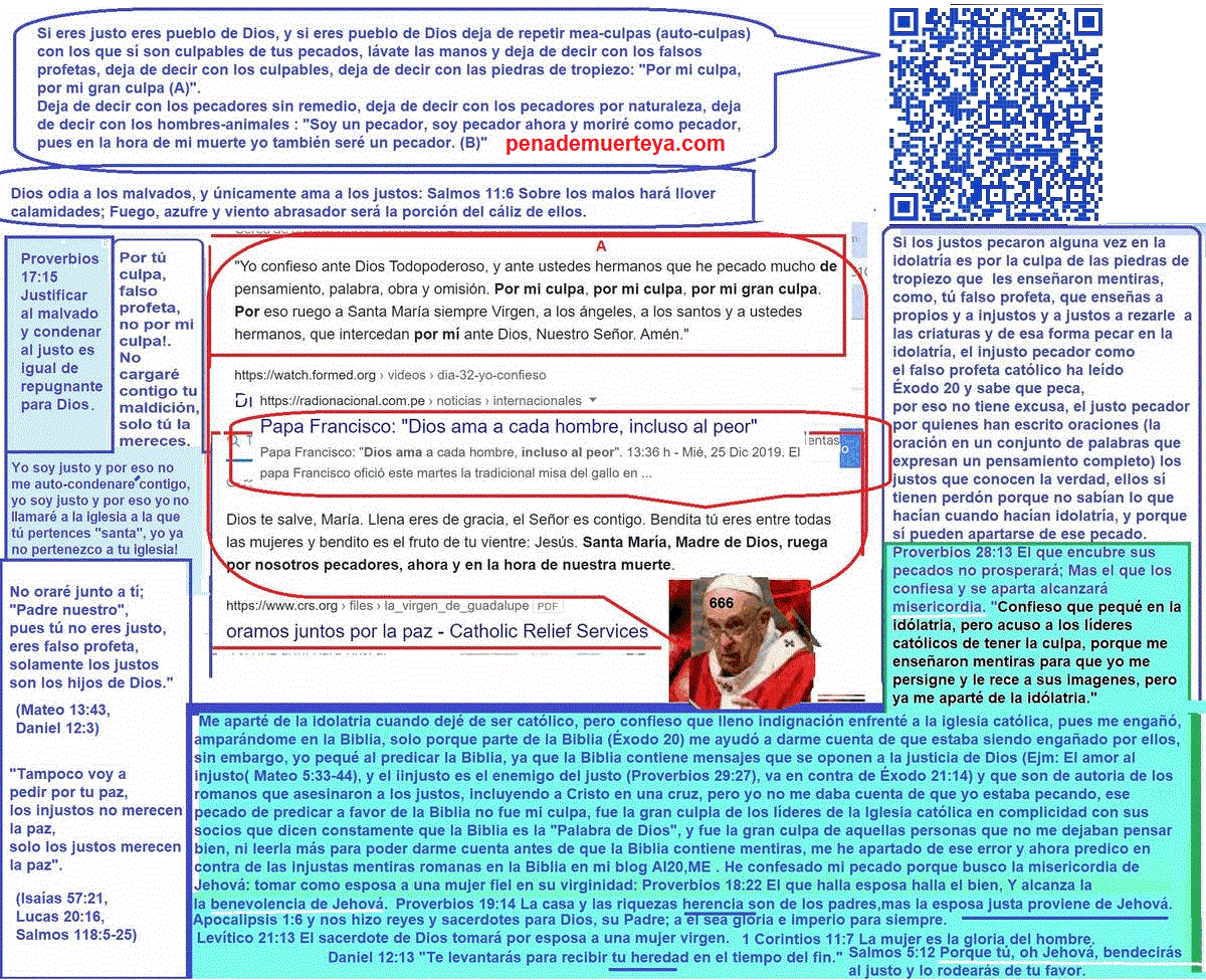 «El imperio Romano, Bahira, Mahoma, Jesús y el judaísmo perseguido. El nacimiento y la muerte de cuarta bestia. La alianza greco-romana por los mismos dioses. El Imperio seléucida. Cuidado con creer en el evangelio del anticristo (Buenas noticias para los injustos, aunque falsas) Si quieres salvarte del engaño del adversario de la justicia, considera que: Para rechazar el falso evangelio de Roma, acepte que si Jesús fue justo entonces no amó a sus enemigos, y si no fue hipócrita entonces no predicó el amor a los enemigos porque no predicaba lo que no practicaba: Proverbios 29:27 Los justos odian a los injustos, y los injustos odian a los justos. Esto es parte del evangelio adulterado por los romanos para la Biblia: 1 Pedro 3:18 Porque Cristo murió una vez por los pecados, el justo por los injustos, para llevarnos a Dios. Ahora mire esto que desmiente esa calumnia: Salmo 118:20 Esta es la puerta de Jehová; los justos entrarán por ella. 21 Te daré gracias porque me has escuchado y has sido mi salvación. 22 La piedra que rechazaron los constructores se ha convertido en la piedra angular. Jesús maldice a sus enemigos en la parábola que predice su muerte y regreso: Lucas 20:14 Pero cuando los viñadores vieron esto, discutieron entre sí, diciendo: Éste es el heredero; Venid, matémoslo, para que la herencia sea nuestra. 15 Entonces lo echaron de la viña y lo mataron. ¿Qué les hará entonces el dueño de la viña? 16 Él vendrá y destruirá a estos viñadores y dará la viña a otros. Cuando lo oyeron, dijeron: ¡De ninguna manera! 17 Pero Jesús, mirándolos, dijo: ¿Qué, pues, es esto que está escrito: La piedra que desecharon los constructores se ha convertido en la piedra angular? Él habló de esta piedra, de la piedra de la pesadilla del rey de Babilonia: Daniel 2:31 Tú, oh rey, veías, y he aquí una gran imagen. Esta imagen, que era muy grande, y cuya gloria era muy sublime, estaba en pie delante de ti, y su aspecto era terrible. 32 La cabeza de esta imagen era de oro fino; su pecho y sus brazos, de plata; su vientre y sus muslos, de bronce; 33 sus piernas, de hierro; sus pies, en parte de hierro y en parte de barro cocido. 34 Estabas mirando, hasta que una piedra fue cortada, no con mano, e hirió a la imagen en sus pies de hierro y de barro cocido, y los desmenuzó. 35 Entonces fueron desmenuzados también el hierro, el barro cocido, el bronce, la plata y el oro, y fueron como tamo de las eras del verano, y se los llevó el viento sin que de ellos quedara rastro alguno. Mas la piedra que hirió a la imagen fue hecha un gran monte que llenó toda la tierra. La cuarta bestia es la alianza de los líderes de todas las falsas religiones amigables con el fraude romano denunciado. El Cristianismo y el Islam dominan el mundo, la mayoría de los gobiernos o juran por el Corán o por la Biblia, por ese simple motivo, aunque los gobiernos lo nieguen, son gobiernos religiosos que se someten a las autoridades religiosas que están detrás de esos libros por los cuales juraron. Aquí les voy a mostrar la influencia romana en los dogmas de estas religiones y como distan mucho de los dogmas de la religión que perseguía Roma, Además, lo que les voy a mostrar no es parte de la religión que hoy se conoce como Judaísmo. Y si a esto le sumamos la fraternidad de los líderes del Judaísmo, Cristianismo e Islam, hay suficientes elementos para señalar a Roma como la creadora de los dogmas de estas religiones, y que la última religión mencionada no es la misma que el Judaísmo que perseguía Roma. Sí, estoy afirmando que Roma creó el cristianismo y que persiguió un Judaísmo diferente al actual, los líderes leales del Judaísmo legítimo jamás darían abrazos fraternales a difusores de doctrinas idólatras. Es evidente que no soy cristiano, ¿entonces porque cito pasajes de la Biblia para dar sustento a lo que digo?, pues porque no todo en la Biblia pertenece exclusivamente al cristianismo, parte de su contenido es el contenido de la religión del camino de la justicia que fue perseguido por el imperio romano por ser contrario al ideal romano de hacer que «Todos los caminos conduzcan a Roma (Es decir, que esos caminos favorezcan los intereses imperiales), por eso tomo algunos pasajes de la Biblia para sustentar mis afirmaciones. Daniel 2:40 Y el cuarto reino será fuerte como hierro; y como el hierro desmenuza y rompe todas las cosas, desmenuzará y quebrantará todo. 41 Y lo que viste de los pies y los dedos, en parte de barro cocido de alfarero y en parte de hierro, será un reino dividido; mas habrá en él algo de la fuerza del hierro, así como viste hierro mezclado con barro cocido. 42 Y por ser los dedos de los pies en parte de hierro y en parte de barro cocido, el reino será en parte fuerte, y en parte frágil. 43 Así como viste el hierro mezclado con barro, se mezclarán por medio de alianzas humanas; pero no se unirán el uno con el otro, como el hierro no se mezcla con el barro. 44 Y en los días de estos reyes el Dios del cielo levantará un reino que no será jamás destruido, ni será el reino dejado a otro pueblo; desmenuzará y consumirá a todos estos reinos, pero él permanecerá para siempre. El cuarto reino es el reino de las falsas religiones. Por eso a los Papas en el Vaticano le dan honores los dignatarios de países como Estados Unidos. El país líder en el mundo no es EEUU, no es la bandera de los Estados Unidos la que ondea en las plazas de armas de las capitales de varios países de Latino América, es la bandera del Vaticano la que ondea. Los Papas se reúnen con los líderes de otras religiones dominantes, cosa imposible de imaginar entre profetas y falsos profetas. Pero entre falsos profetas estas alianzas son posibles. La piedra angular es la justicia. Los romanos no sólo despreciaban el hecho de que fuera un hombre justo, sino también el hecho de que él merecía casarse con una mujer justa: 1 Corintios 11:7 La mujer es la gloria de