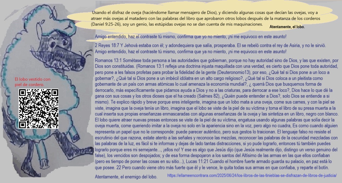 5b. Excusas de lobos, desmontadas por la razón: “No lo juzgues, ora por él”, pero orar por un lobo no lo hace oveja, solo le da más tiempo para devorar. - Excusas de lobos, desmontadas por la razón: “Está siendo atacado por Satanás”, pero Satanás vive en los lobos: no son sus víctimas, son parte de él.