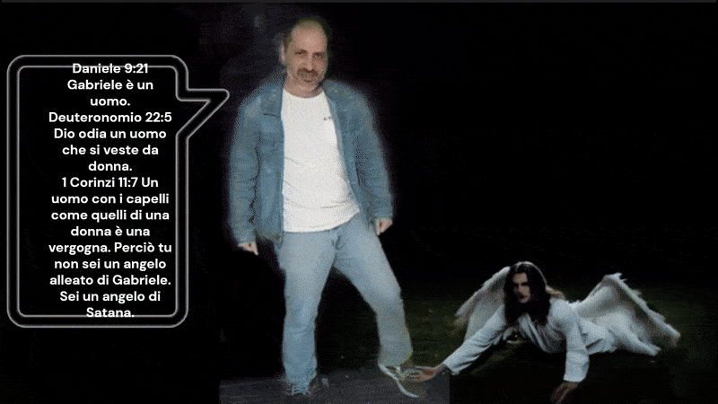 Guarda com’è curioso, se Dio in Levitico 18 condannava gli uomini a giacere con altri uomini, come può un’immagine che lo presenta fare il contrario rappresentare il suo comandamento? Non solo porge la mano al presunto Adamo, ma giace anche con altri uomini, hai notato?