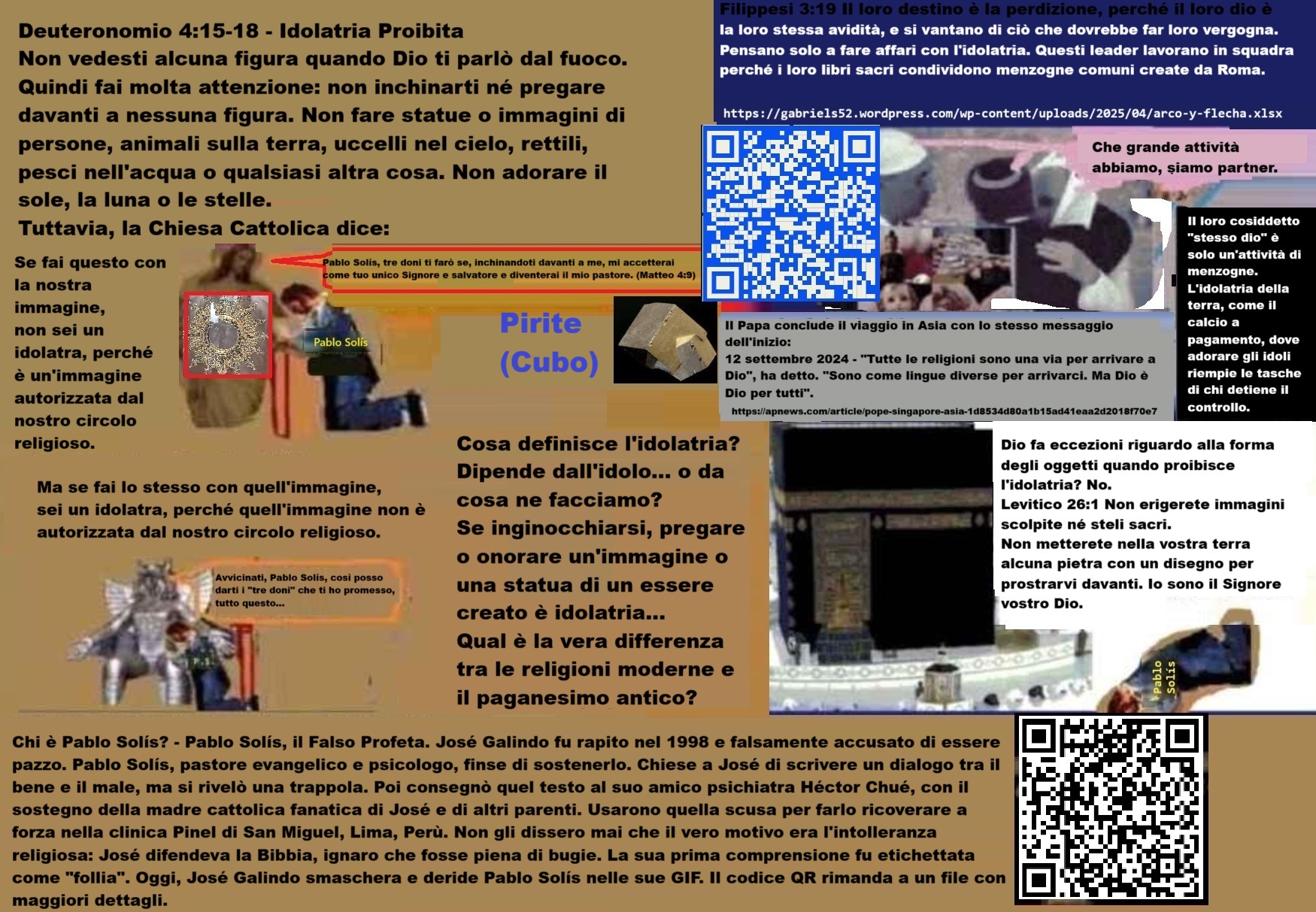 «Chi è responsabile del male, «»Satana»» o la persona che commette il male? Non farti ingannare da giustificazioni stupide perché «»il Diavolo»» a cui danno la colpa per le loro stesse azioni malvagie sono in realtà loro stessi. La tipica scusa della persona religiosa perversa: «»Io non sono così perché non sono io a fare questo male, ma è il Diavolo che mi ha posseduto a compiere questo male.»» I romani, agendo come «»Satana»», hanno creato contenuti che hanno anche fatto passare per leggi di Mosè, contenuti ingiusti per screditare quelli giusti: La Bibbia non contiene solo verità, ma anche menzogne. Satana è un essere di carne e ossa perché significa: il calunniatore. I romani calunniarono Paolo attribuendogli la paternità del messaggio di Efesini 6:12. La lotta è contro carne e sangue. Numeri 35:33 menziona la pena di morte contro carne e sangue, gli angeli inviati da Dio a Sodoma distrussero carne e sangue, e non «»schiere spirituali della malvagità nei luoghi celesti.»» Matteo 23:15 dice che i farisei rendono i loro seguaci ancora più corrotti di loro, suggerendo che qualcuno possa diventare ingiusto a causa di un’influenza esterna. D’altra parte, Daniele 12:10 afferma che gli ingiusti continueranno ad agire ingiustamente perché è nella loro natura, e solo i giusti comprenderanno la via della giustizia. L’incoerenza tra questi due messaggi mostra che alcune parti della Bibbia si contraddicono, mettendone in discussione l’assoluta veridicità. https://naodanxxii.wordpress.com/wp-content/uploads/2025/03/idi03-the-plot.pdf .» «L’Impero Romano, Bahrain, Maometto, Gesù e l’ebraismo perseguitato. Messaggio introduttivo: Guardate in cosa credevano coloro che si rifiutarono di mangiare carne di maiale nonostante fossero torturati dal re Antioco IV Epifane, un re adoratore di Zeus. Guarda come l’anziano Eleazar, insieme a sette fratelli e alla loro madre, furono assassinati dal re greco Antioco perché si rifiutavano di mangiare carne di maiale. Dio è stato così crudele da abolire una legge che Lui stesso aveva stabilito e per la quale quegli ebrei fedeli avevano offerto la loro vita nella speranza di ricevere la vita eterna attraverso quel sacrificio? Dio non è crudele, altrimenti non sarebbe il migliore. Dio non è amico dei malvagi, altrimenti sarebbe crudele e sarebbe parte del problema, non della soluzione. Coloro che abolirono quella legge non furono né Gesù né i suoi discepoli. Erano Romani che avevano gli stessi dei dei Greci: Giove (Zeus), Cupido (Eros), Minerva (Atena), Nettuno (Poseidone), Sia i Romani che i Greci apprezzavano il maiale e i frutti di mare, ma gli ebrei fedeli rifiutavano questi alimenti. 2 Maccabei 7:1 Sette fratelli e la loro madre furono arrestati. Il re voleva costringerli a mangiare carne di maiale, proibita dalla legge, picchiandoli con fruste e tendini di bue. 2 Uno di loro, parlando a nome di tutti i fratelli, disse: «Che cosa vuoi sapere interrogandoci? Siamo pronti a morire piuttosto che infrangere le leggi dei nostri antenati.»» 8 Egli rispose nella sua lingua nativa: «Non mangerò carne di maiale». Quindi anche lui fu sottoposto a tormento. 9 Ma mentre rendeva l’ultimo respiro, disse: Tu, malfattore, togli la nostra vita presente. Ma Dio risusciterà alla vita eterna noi che siamo morti secondo le sue leggi. Messaggio: La nascita e la morte della quarta bestia. L’alleanza greco-romana tra gli stessi dei. L’impero seleucide. Attenti a credere nel vangelo dell’anticristo (Buona notizia per gli ingiusti, anche se falsa) Se vuoi salvarti dall’inganno dell’avversario della giustizia, considera che: Per rifiutare il falso vangelo di Roma, accetta che se Gesù era giusto allora non amava i suoi nemici, e se non era un ipocrita allora non predicava l’amore per i nemici perché non predicava ciò che non praticava: Proverbi 29:27 I giusti odiano gli ingiusti, e gli ingiusti odiano i giusti. Questa è una parte del Vangelo adulterata dai Romani per la Bibbia: 1 Pietro 3:18 Poiché Cristo morì una volta per i peccati, lui giusto per gli ingiusti, per condurci a Dio. Ora guarda questo che confuta quella calunnia: Salmo 118:20 Questa è la porta del SIGNORE; i giusti vi entreranno. 21 Ti rendo grazie perché mi hai ascoltato e sei stato la mia salvezza. 22 La pietra che i costruttori hanno scartato è diventata la pietra angolare. Gesù maledice i suoi nemici nella parabola che predice la sua morte e il suo ritorno: Luca 20:14 Ma i vignaioli, veduto ciò, ragionarono tra loro, dicendo: Costui è l’erede; Venite, uccidiamolo, affinché l’eredità sia nostra. 15 Allora lo cacciarono fuori dalla vigna e lo uccisero. Che cosa farà loro allora il padrone della vigna? 16 Verrà e distruggerà quei vignaioli e darà la vigna ad altri. Quando udirono ciò, dissero: «No di certo!». 17 Ma Gesù, guardandoli, disse: «Che cosa è dunque ciò che sta scritto: «»La pietra che i costruttori hanno scartata è diventata la pietra angolare»»?» Parlò di questa pietra, la pietra dell’incubo del re di Babilonia: Daniele 2:31 Mentre guardavi, o re, ecco, una grande immagine si ergeva davanti a te, una statua grandissima, la cui gloria era di somma grandezza; il suo aspetto era terrificante. 32 La testa della statua era d’oro fino, il suo petto e le sue braccia d’argento, il suo ventre e le sue cosce di bronzo, 33 le sue gambe di ferro e i suoi piedi in parte di ferro e in parte d’argilla. 34 Mentre guardavi, una pietra si staccò dal monte, ma non per mano di uomo, e colpì i piedi della statua di ferro e di argilla e li frantumò. 35 Allora il ferro, l’argilla, il bronzo, l’argento e l’oro furono frantumati e divennero come la pula sulle aie d’estate; il vento li portò via senza lasciare traccia. Ma la pietra che colpì la statua divenne una grande montagna e riempì tutta la terra. La quarta bestia è l’alleanza dei leader di tutte le false religioni amiche della denunciata 