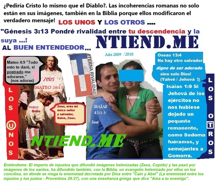 En contrarios propósitos a Cristo está el Anticristo, si lees Isaías 11 verás la misión de Cristo en su segunda vida, y no es favorecer a todos sino solo a los justos, pero el Anticristo es inclusivo, a pesar de ser injusto, quiere subirse al arca de Noé, a pesar de ser injusto quiere salir de Sodoma junto a Lot… Felices aquellos a quienes estas palabras no les resultan ofensivas. El que no se siente ofendido por este mensaje, ese es justo, felicidades para él: El cristianismo fue creado por los romanos, sólo una mente amiga del celibato, propia de los líderes griegos y romanos, enemigos de los judíos de la antigüedad, Podría concebir un mensaje como el que dice: ‘ Estos son los que no se contaminaron con mujeres, porque permanecieron vírgenes. Siguieron al Cordero dondequiera que fuera. Fueron comprados de entre los hombres y ofrecidos como primicias a Dios y al Cordero’ en Apocalipsis 14:4, o un mensaje como este que es similar: ‘Porque en la resurrección ni se casarán ni se darán en casamiento, sino que serán como los ángeles de Dios en el cielo’, en Mateo 22:30, ambos mensajes suenan como si vinieran de un sacerdote católico romano, y no de un profeta de Dios que busca esta bendición para sí mismo: El que encuentra esposa, halla el bien, y obtiene favor del Señor (Proverbios 18:22), Levítico 21:14 Viuda, o divorciada, o mujer vil, o ramera, no las tomará, sino que tomará por mujer a una virgen de su propio pueblo.