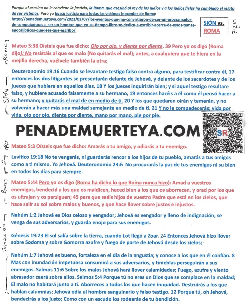 1 Cárcel = Problema alimentado y cuidado. Pena de muerte = Problema exterminado, con el problema exterminado lloran los que nunca lamentan la muerte de las víctimas de los extorsionadores, sino la de ellos, sus compinches parásitos. https://ellameencontrara.com/2025/09/20/carcel-problema-alimentado-y-cuidado-pena-de-muerte-problema-exterminado-con-el-problema-exterminado-lloran-los-que-nunca-lamentan-la-muerte-de-las-victimas-de-los-extorsionadores-sino-la-de-el/ 2 Evanđelje koje je zabranio Rim, ali ne i Bog, otkriva se u doba interneta. https://neveraging.one/2025/01/07/evandelje-koje-je-zabranio-rim-ali-ne-i-bog-otkriva-se-u-doba-interneta/ 3 Библию, используемую католиками и протестантами, объединяет римская ложь, одна из которой — учение о любви к врагам. Лжепророки пропагандируют такую ложь, чтобы противостоять смертной казни. https://144k.xyz/2024/08/30/10067/ 4 La carne de cerdo y la conspiración romana contra la religión de Jesús que prohibe su consumo. https://ntiend.me/2024/04/13/la-carne-de-cerdo-y-la-conspiracion-romana-contra-la-religion-de-jesus-que-prohibe-su-consumo/ 5 There are people who want the truth and deserve to know it, if this seemed valuable information to you, create your videos, create your blogs, nothing here that I create has copyright, you can translate, disseminate, even improve. https://gabriels.work/2023/09/25/there-are-people-who-want-the-truth-and-deserve-to-know-it-if-this-seemed-valuable-information-to-you-create-your-videos-create-your-blogs-nothing-here-that-i-create-has-copyright-you-can-transla/