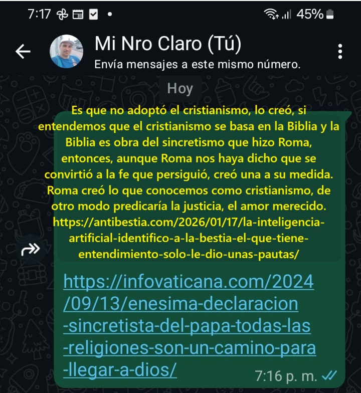 Cometí el error de defender la fe en la Biblia, pero por ignorancia. Sin embargo, ahora veo que no es el libro guía de la religión que Roma persiguió, sino de la que creó para complacerse con el celibato. Por eso predicaron un Cristo que no se casa con una mujer, sino con su iglesia, y ángeles que, a pesar de tener nombres masculinos, no parecen hombres (saca tus propias conclusiones). Estas figuras son afines a los falsos santos, besadores de estatuas de yeso, y similares a los dioses grecorromanos, porque, en realidad, son esos mismos dioses paganos con otros nombres.